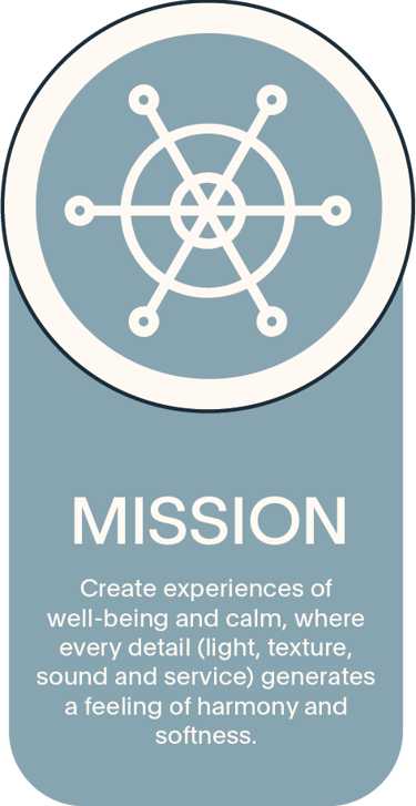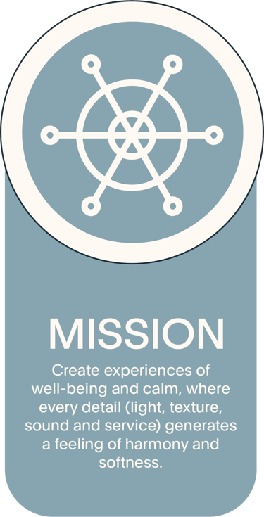 To make each guest experience the lightness of being, through an aesthetic, serene and sensory environment that invites pause and conscious enjoyment.